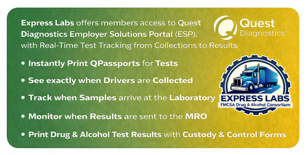 Through our Partnership with Quest Diagnostics, Members have access to the Employer Solutions Portal (ESP) with Real-Time Test Tracking from Collections to Final Results - so Managing Testing is Simple and Hassle-Free.